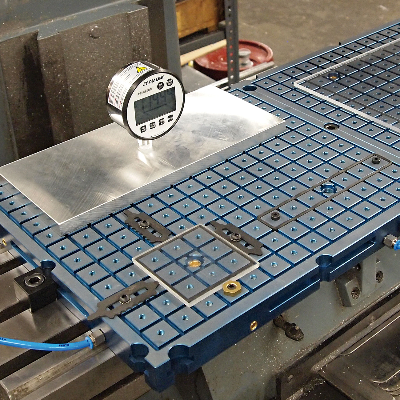 6 rondelle in acciao di grandi dimensioni posizionate nella parte inferiore permettono alla piastra di essere utilizzata per operazioni di rettifica  o su mandrini magnetici