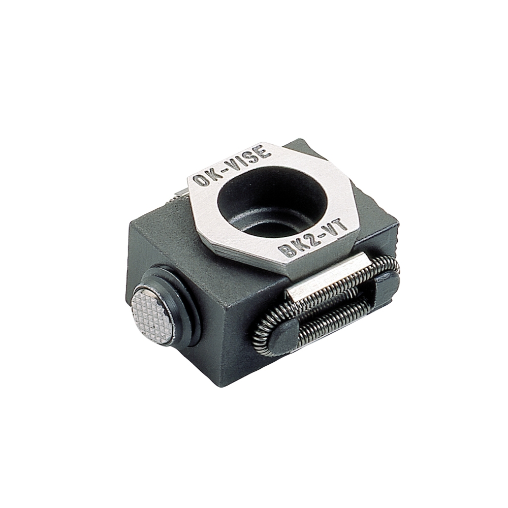 Ideali per lo staffaggio di pezzi dalle forme irregolari questi morsetti hanno nella ganascia un pressore a sfera in accaio che permette l'aggiustamento fino a 9 gradi. Serie B e Serie D