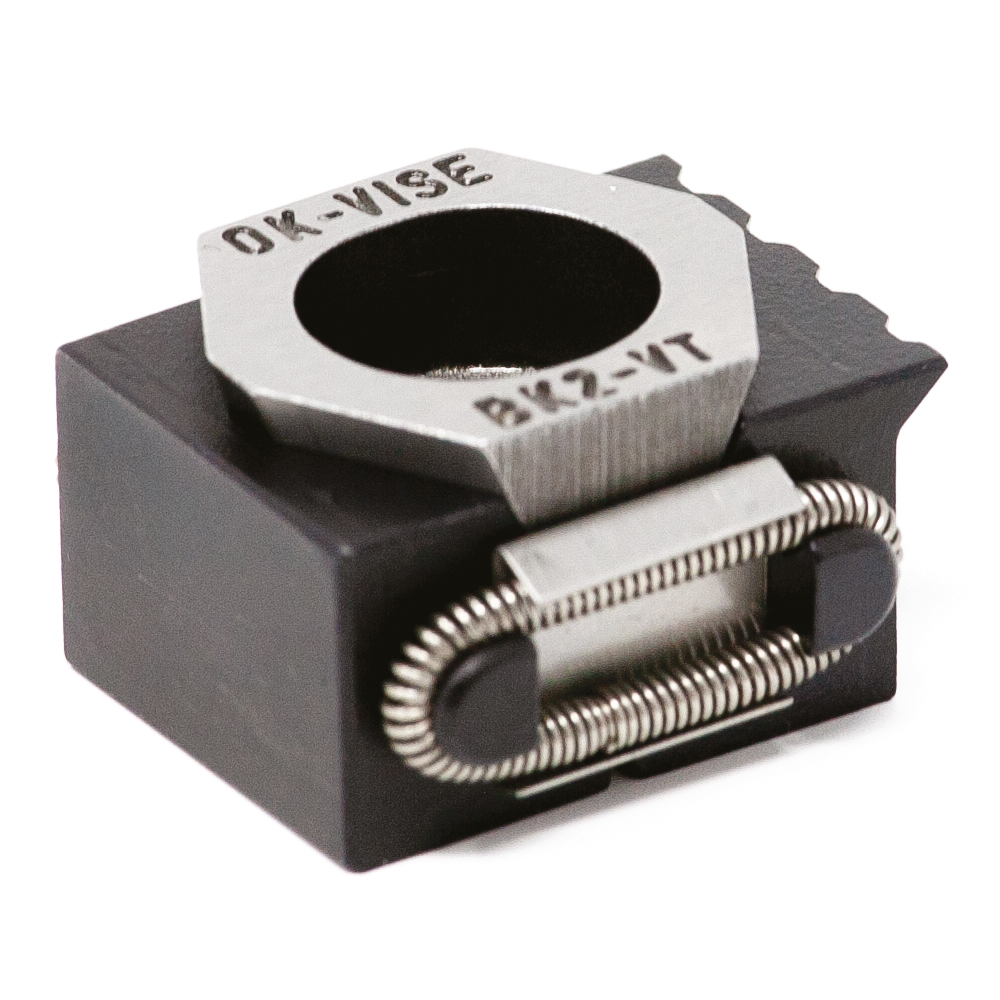 Morsetto con un lato a coltello per aumentare presa nel pezzo e lato liscio