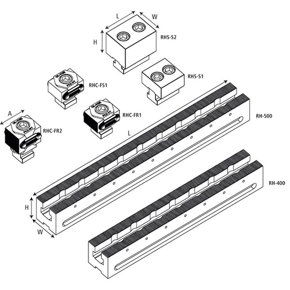 Il sistema RH è il nuovo sistema di bloccaggio ideato da Ok Vise. Il sistema Multi Rail RH è perfetto quando la forza di staffaggio supera le 4 tonnellate e quando i pezzi sono ingombranti.