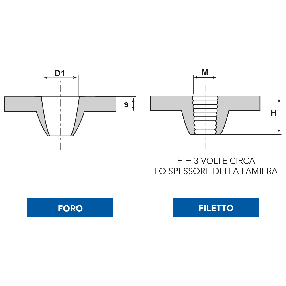 Il foro creato è 3 volte circa lo spessore della lamiera.