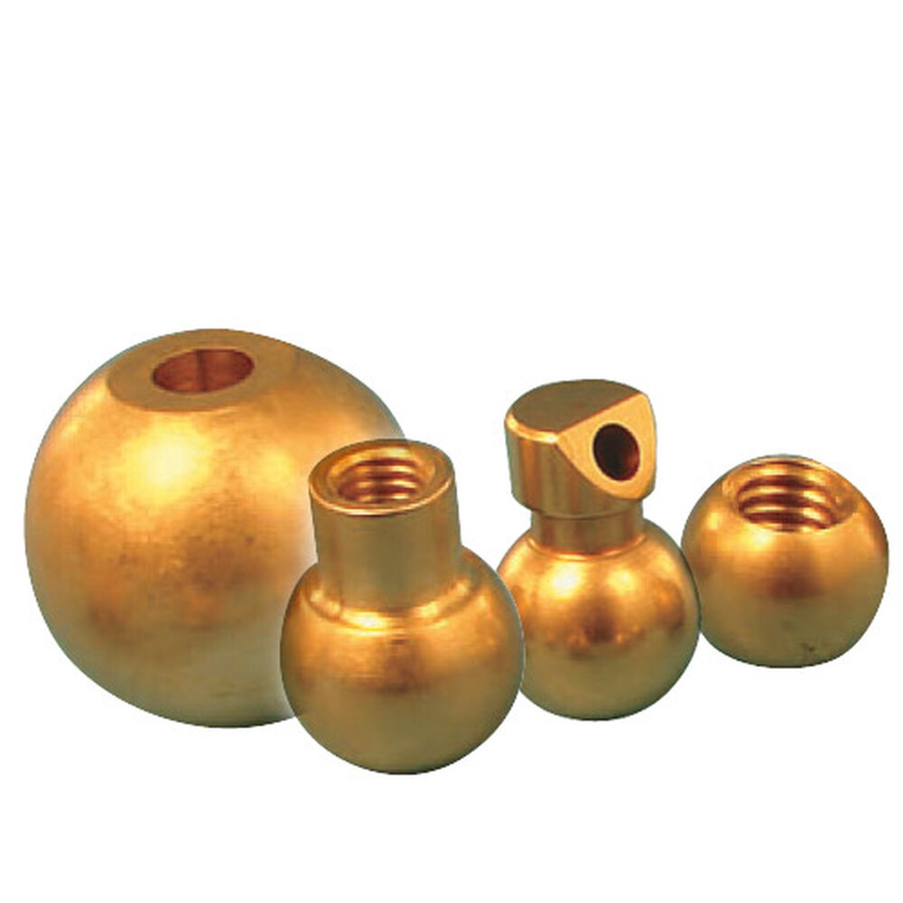 GETTI A SFERA IN OTTONE CON FORO LISCIO E FILETTATO.