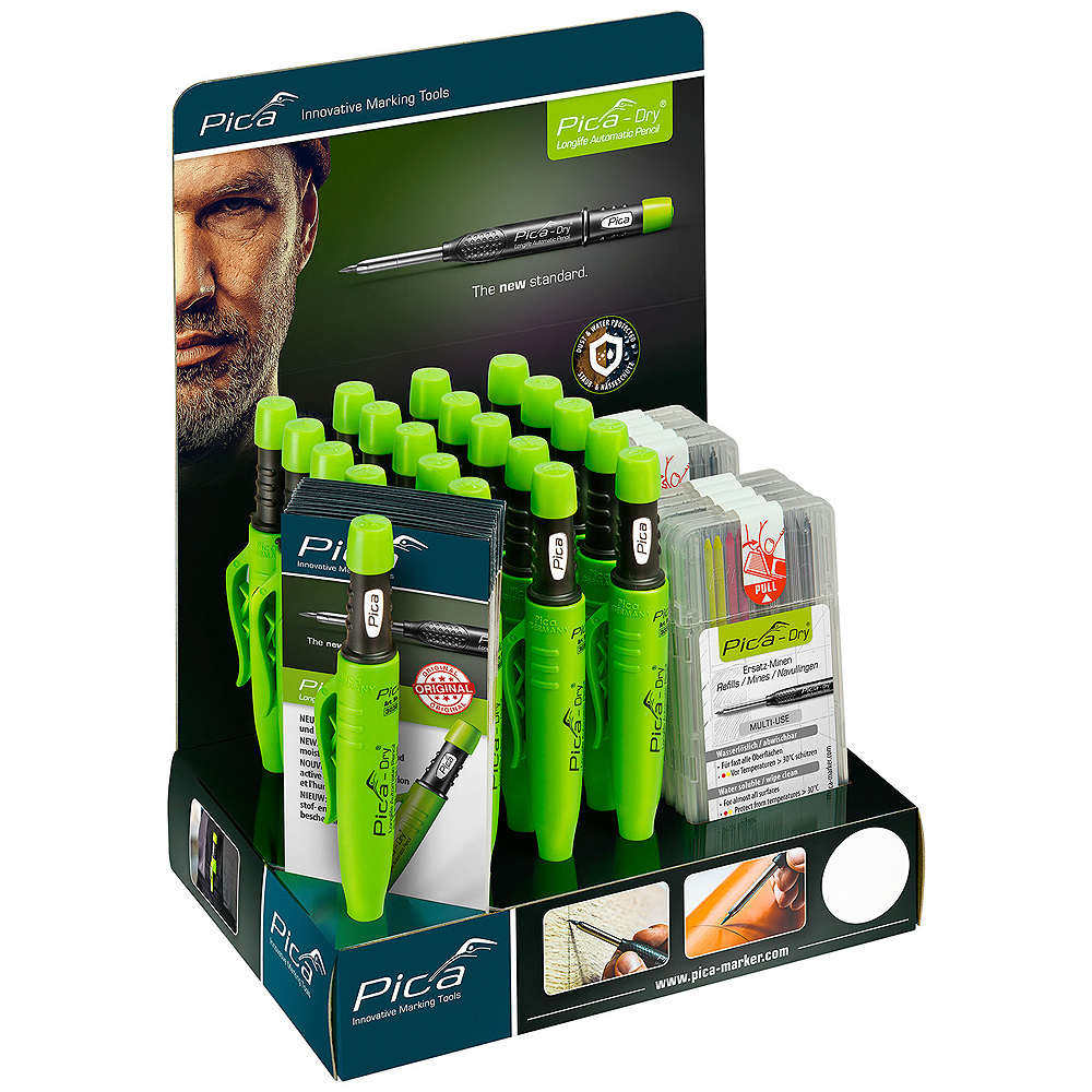 Display Pica-Dry 20 marcatori Pica Dry con mine speciali in grafite + 10 mine speciali di ricambio "Set grafite"