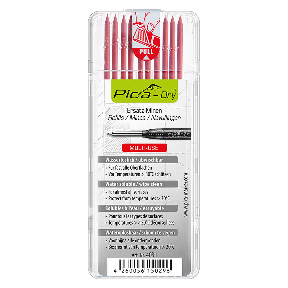 Pica Dry è il marcatore professionale per l'edilizia adatto a quasi tutte le superfici. Sia che si tratti di superfici asciutte o umide, lisce o ruvide, polverose o arrugginite, grazie all'ampia gamma di mine, si è attrezzati al meglio per ogni progetto.