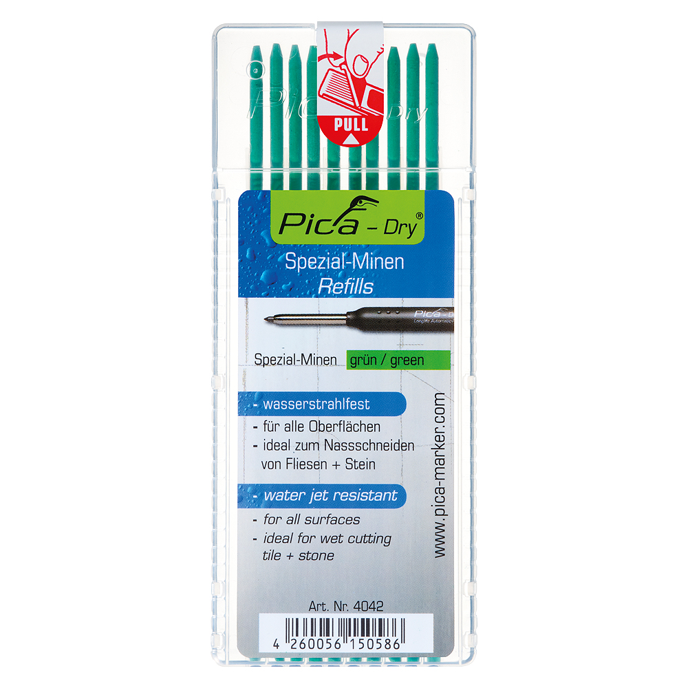 Pica Dry è il marcatore professionale per l'edilizia adatto a quasi tutte le superfici. Sia che si tratti di superfici asciutte o umide, lisce o ruvide, polverose o arrugginite, grazie all'ampia gamma di mine, si è attrezzati al meglio per ogni progetto.