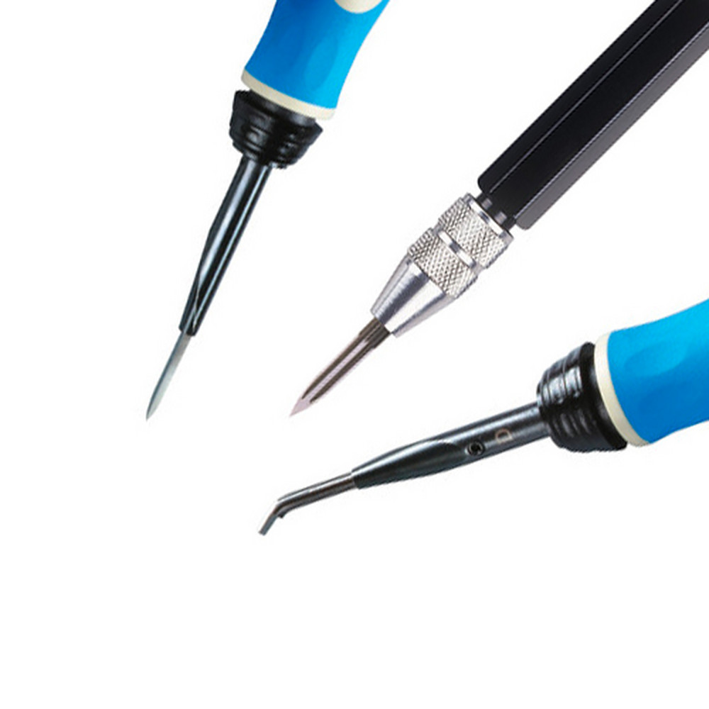 Raschietti con lama o doppia lama triangolare. Ideali per lavorazioni precise e sbavature interne.