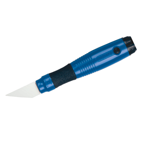 Ideale per sbavare materiali plastici con particolari diritti e curvi. La lama in ceramica è fissa nell' impugnatura ed ha due angoli di taglio a 90°. Il piano dei due taglienti è raggiato per evitare di graffiare le superfici da sbavare.