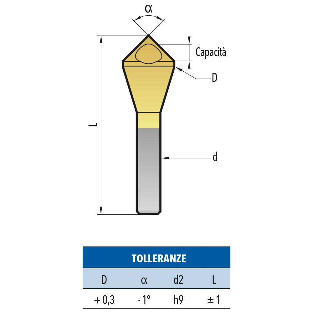 Frese a svasare in HSS-E TIN con foro angolo di ta